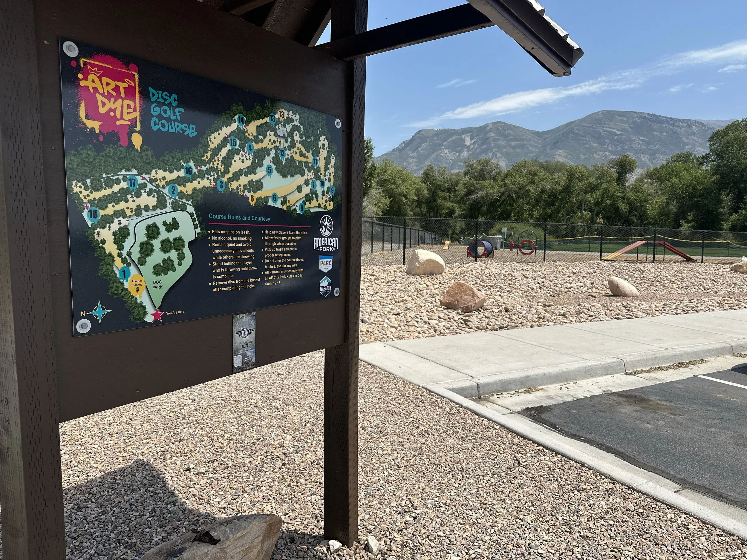 I worked with ElevateUT and Lehi City Parks & Rec to map and design the Dragonfly Disc Golf Course signage, located in Lehi, UT. This beautiful course is now maintained by the city which keeps it playing great year round! The city decided to use recycled metal signs which was more sustainable and cost effective.